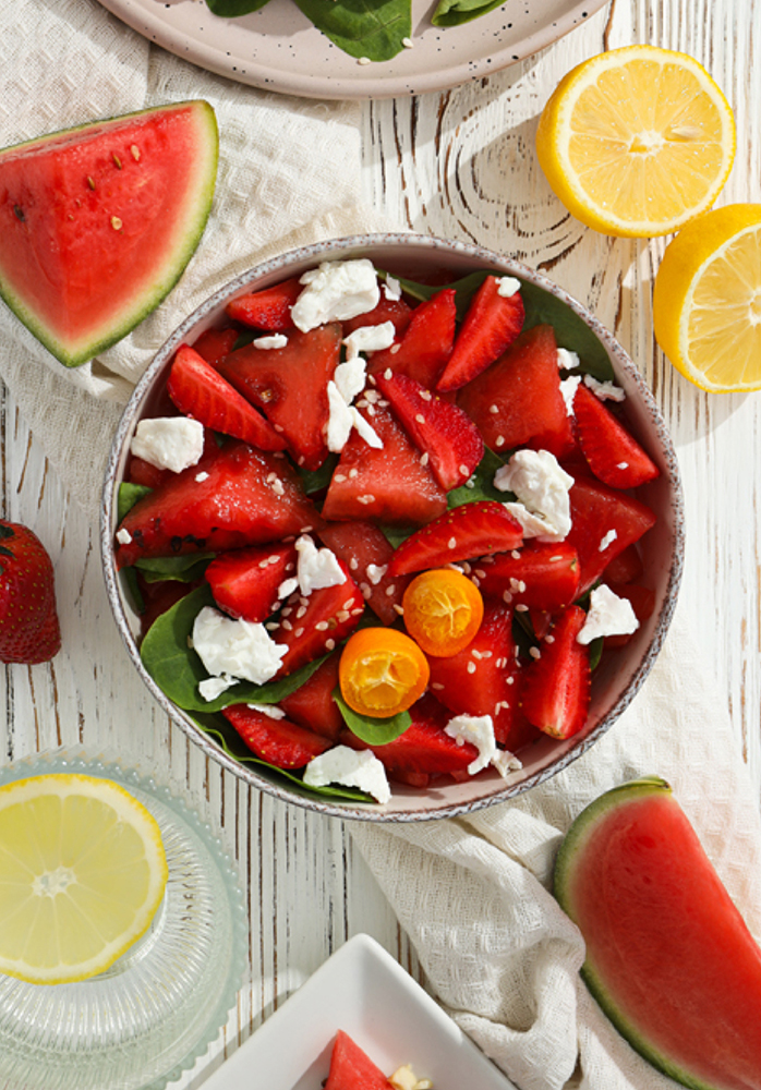 Watermelon, Strawberry, Spinach & Feta Salad